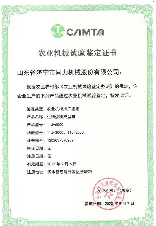 热烈祝贺华体会·hth体育11J-6000、11J-3000、11J-2000产品通过了山东省农机鉴定站的农业机械推广鉴定,获得了山东省农业机械试验鉴定证书。